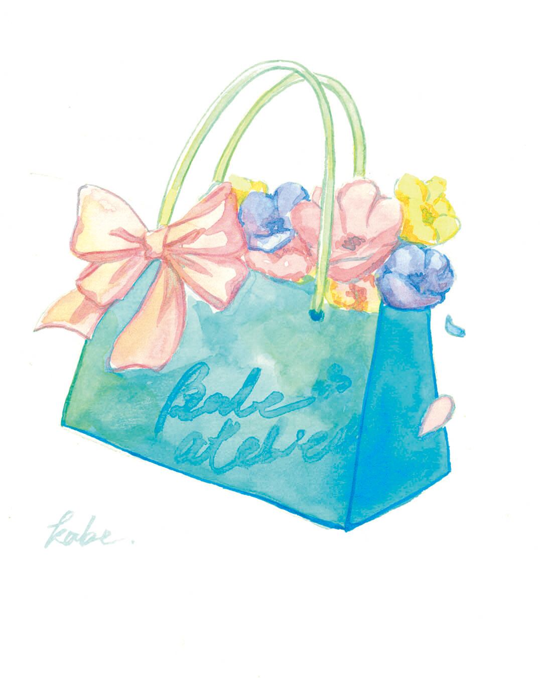 原画「花いっぱいのバッグ」